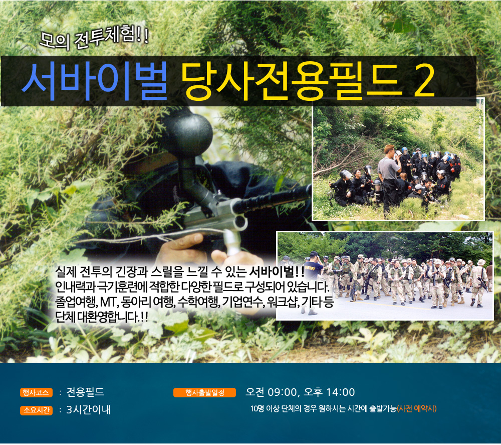 간략설명 행사코스 : 전용필드 / 소요시간 : 1~2시간이내